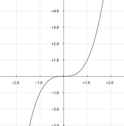 אם כן, שיטת העבודה שלנו כדי למצוא נקודות מינימום ומקסימום היא פשוטה - גוזרים את הפונקציה ובודקים באילו נקודות הנגזרת מתאפסת. כל נקודת מינימום או מקסימום תצוץ כך. לרוע המזל, יש סיכוי שיצוצו עוד נקודות. הביטו בגרף של \(f\left(x\right)=x^{3}\):