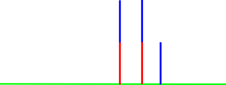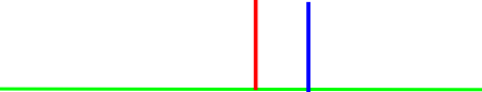 אני אאמץ את שיטת הסימון הבאה לתיאור לוח הקנבוש: אני אכתוב אותו בתור \(\left\{ L|R\right\} \) כאשר \(L\) תהיה רשימת הלוחות שיכולים להתקבל מהלוח הנוכחי אחרי מהלך שאליס תבצע, ואילו \(R\) תהיה רשימת הלוחות שיכולים להתקבל מהנוכחי אחרי מהלך שבוב יבצע. בואו נתחיל מהסיטואציה הכי פשוטה: לוח ריק. מה שאני אצייר רק בתור קו ירוק ותו לא. במקרה הזה, אין לא לאליס ולא לבוב מהלכים חוקיים, כלומר המצב הוא \(\left\{ \ |\ \right\} \). מי מבין השניים שמתחיל, מפסיד מייד כי אין לו מה לעשות, ואז השני מנצח. לכן אסמן \(\left\{ \ |\ \right\} =0\) (זוהי הגדרה של 0, אם תרצו).