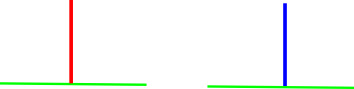 בואו נסתכל עכשיו על לוח שבו יש קו אדום וקו כחול אחד, ששניהם מחוברים לקרקע: