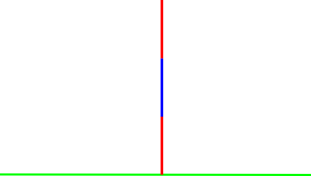 עכשיו בואו נעבור למשהו שונה ממה שראינו עד כה: לוח שבו יש קו אדום אחד שמחובר לקרקע, ומעליו יש קו כחול: