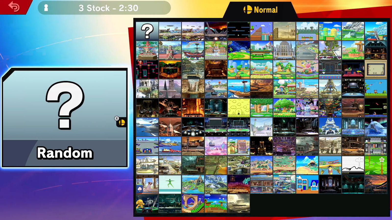הנה לכם סיפור על איך בעיות מתמטיות צצות מעצמן. זה לא מכבר יצא לאוויר העולם משחק הוידאו Super Smash Bros. Ultimate שהוא נצר לשושלת ארוכה ומפוארת של משחקי מכות שמאחדים דמויות משלל משחקים בלתי קשורים בעליל על מנת שירביצו אחד לשני באווירה של כאוס מוחלט בשלל זירות שונות ומשונות שנלקחות גם כן משלל משחקים בלתי קשורים בעליל. המשחק הנוכחי החליט לקחת את המופרכות הזו לשיאים חדשים על ידי כך שיאגד את כל הדמויות והזירות מכל המשחקים שיצאו עד כה בסדרה, ויוסיף עוד. כתוצאה מכך יש לא פחות מ-103 זירות במשחק. מסך בחירת הזירות נראה כך: