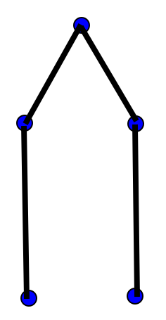 כרגע \(E=4\) (כמספר הצמתים פחות אחד - לא מקרי, כמובן, הקשר \(E=V-1\) מתקיים בכל עץ) ו-\(F=1\). כלומר, כבר כרגע מתקיימת הנוסחה \(V-E+F=2\), וזה לא מפתיע כי הגרף שקיבלנו כרגע הוא גם מישורי וגם קשיר (זוכרות? קשירות הייתה הכרחית בשביל נוסחת אוילר, בדיוק בגלל שצמתים מבודדים כמו בתמונות הקודמות לא משפיעים על \(E\) ועל \(F\) ואפשר להוסיף כמה מהם שרוצים). מה שיקרה מכאן ואילך הוא שכל צעד ישמר את הקשר הזה, \(V-E+F=2\); כי כל צעד גם יוסיף קשת אחת (יגדיל את \(E\) ב-1) וגם יצור פאה חדשה (יגדיל את \(F\) ב-1). בואו נראה את זה קורה בפעם הראשונה: