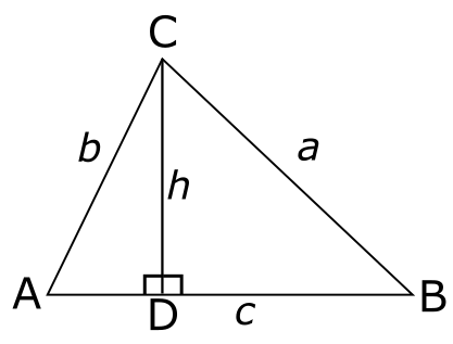 \(c=\left|AB\right|=\left|AD\right|+\left|BD\right|=a\cos\beta+b\cos\alpha\)